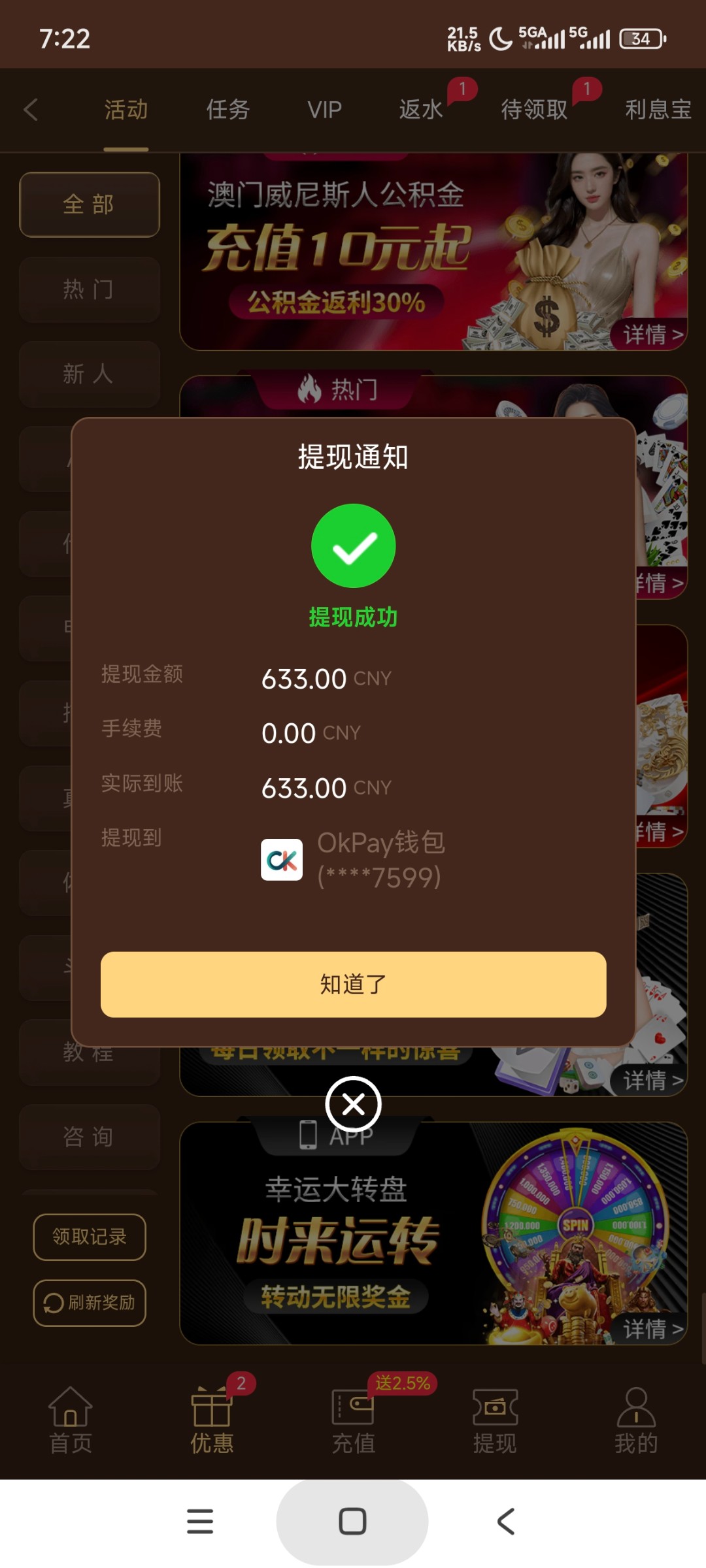 有没有充值提款成功的,刚刚打到450,要充值100,怕被黑